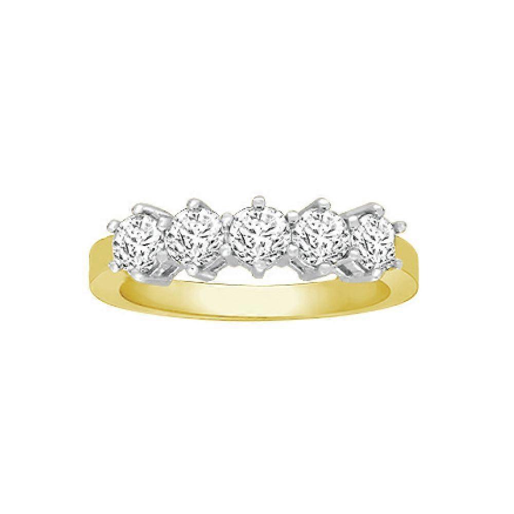 Jewelco London Ladies Solid 18ct Yellow Gold Cluster Set Round G SI1 1ct Diamond 5 Stone Eternity Ring 5mm