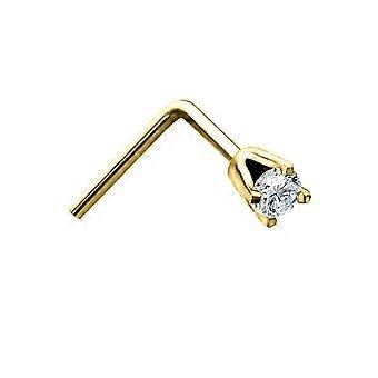 Jewelco London Ladies Solid 9ct Yellow Gold White Round Diamond Solitaire Claw Set Nose Stud 0.02ct 1.65mm