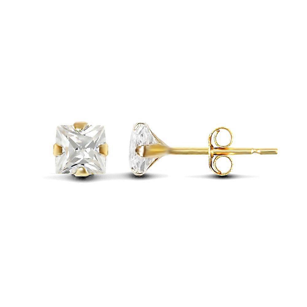 Jewelco London 9ct Yellow Gold White Square Cubic Zirconia Claw Set Solitaire Stud Earrings, 4mm