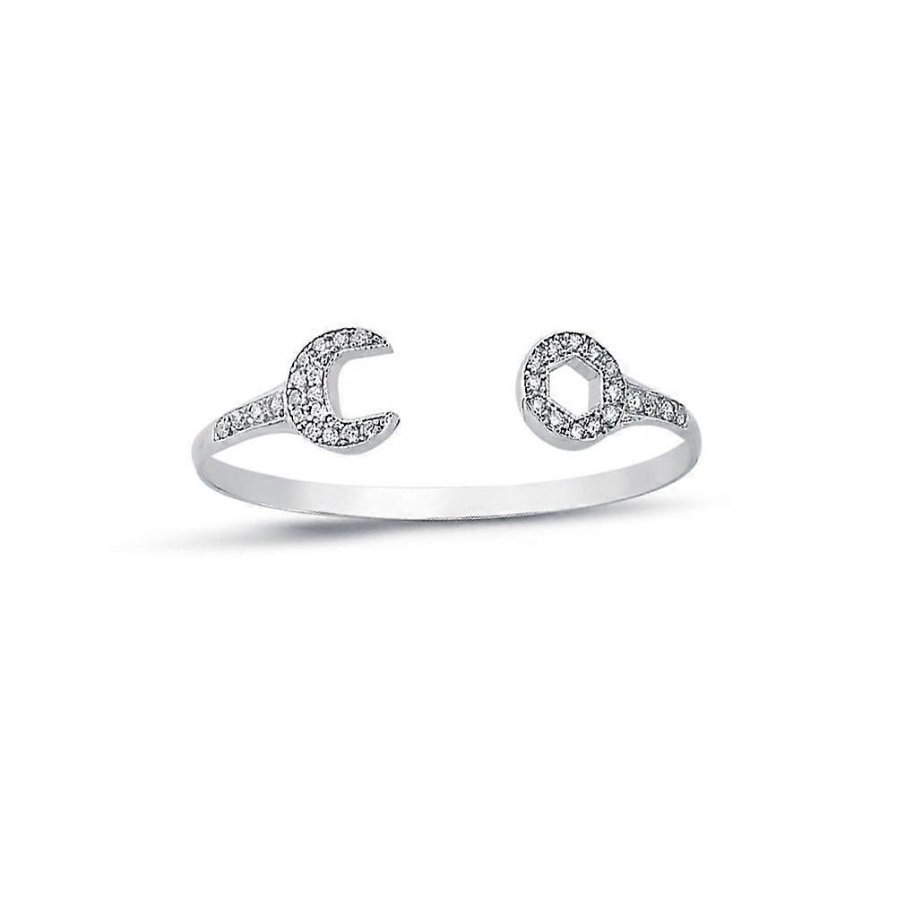 Jewelco London Kids Rhodium Plated Sterling Silver Round Cubic Zirconia Spanner Baby Bangle Bracelet 3mm