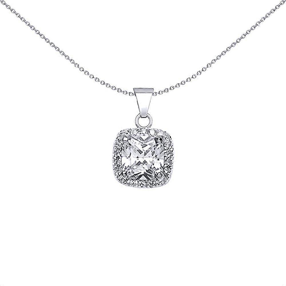 Jewelco London Ladies Sterling Silver Cushion Cubic Zirconia Halo Cluster Pendant Necklace 18 inch