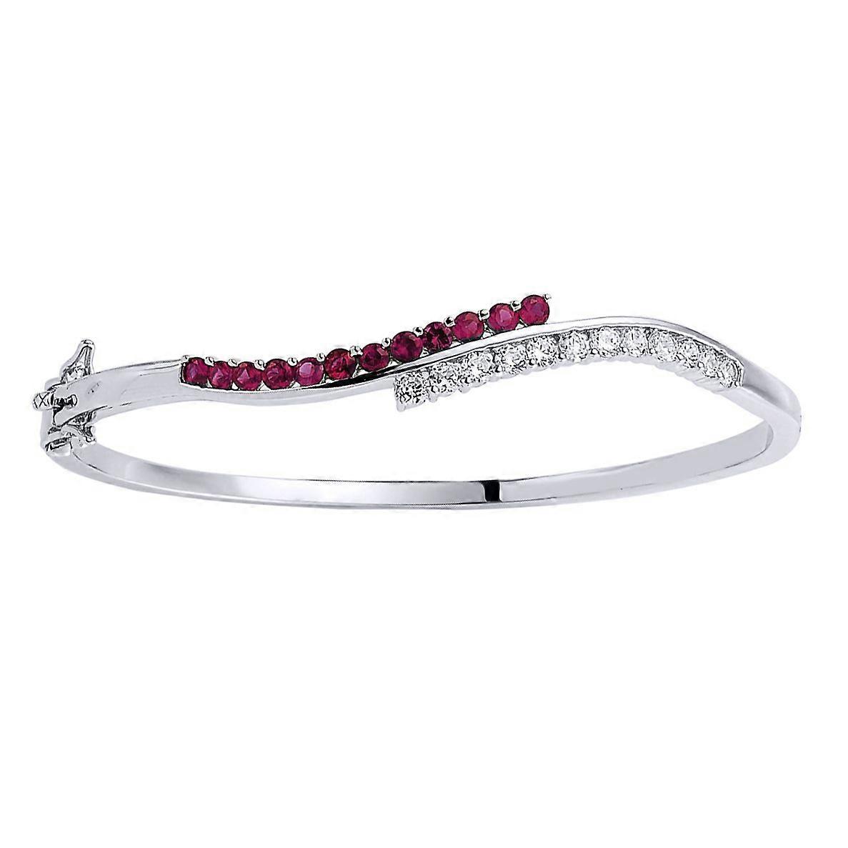 Jewelco London Ladies Sterling Silver Ruby-Red Cubic Zirconia Eternity Wave Bangle Bracelet
