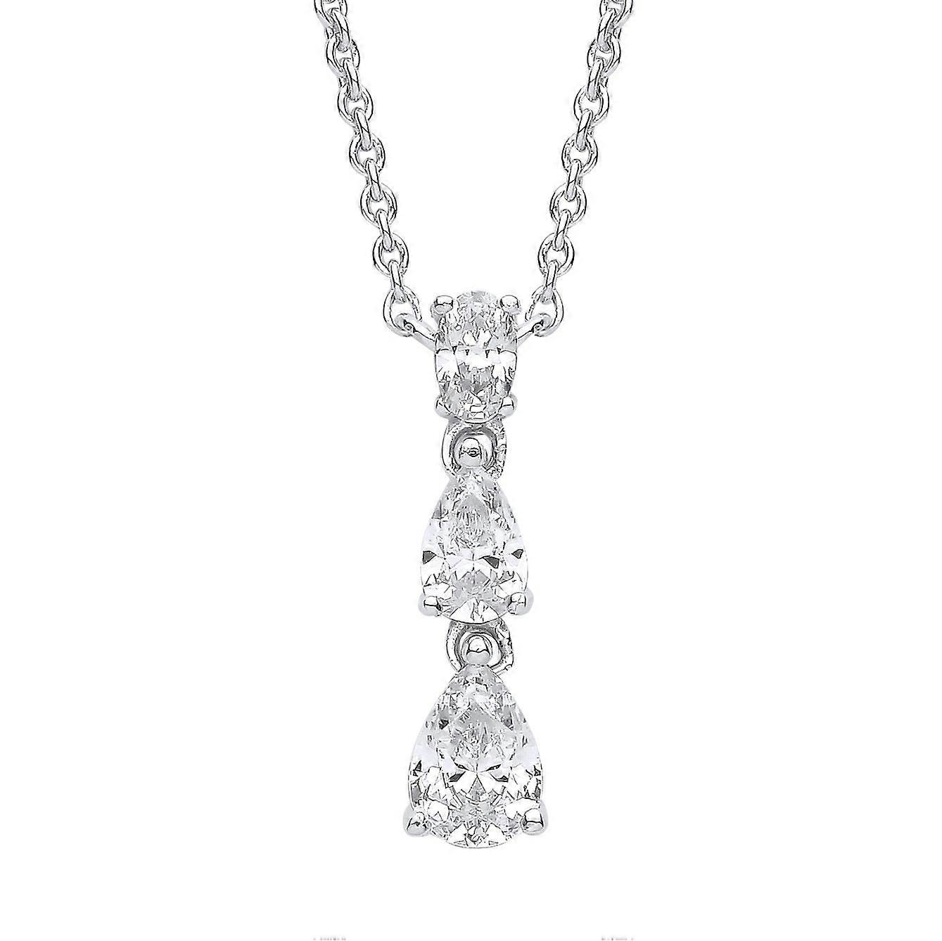 Jewelco London Ladies Sterling Silver Pear Oval CZ Trilogy Raindrop Cluster Lavalier Necklace 15 + 1.5 inch