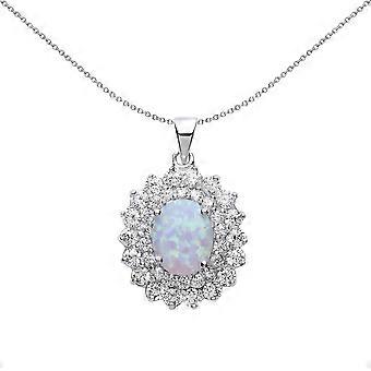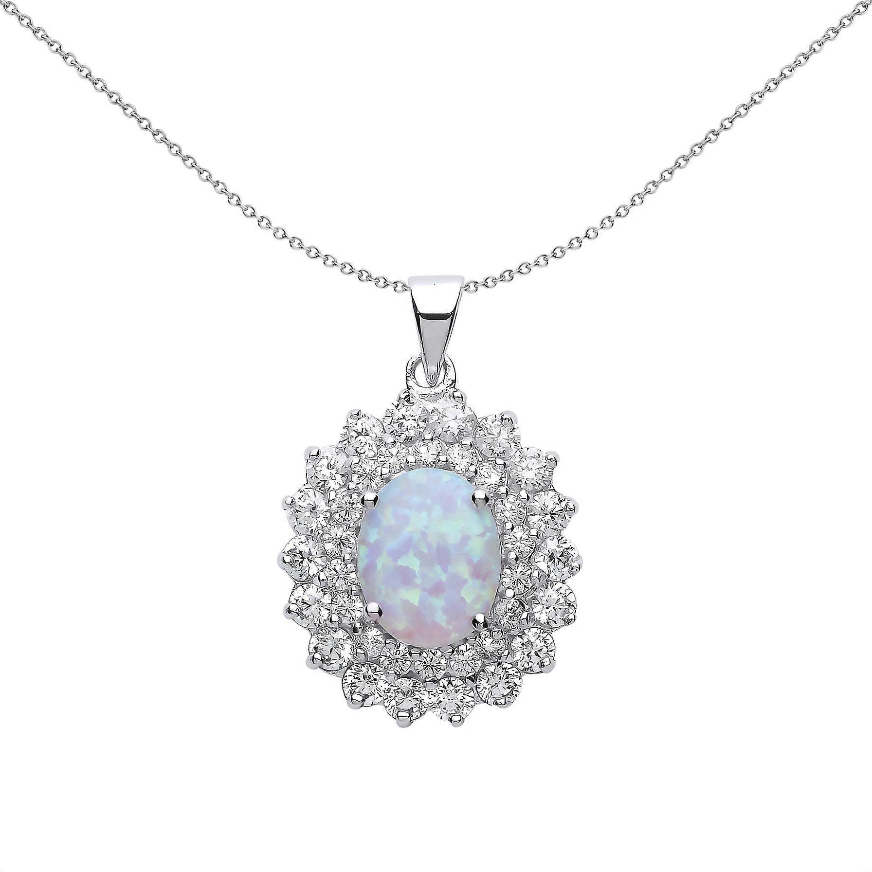 Jewelco London Ladies Sterling Silver Oval Opal Royal Cluster Pendant Necklace 18 inch