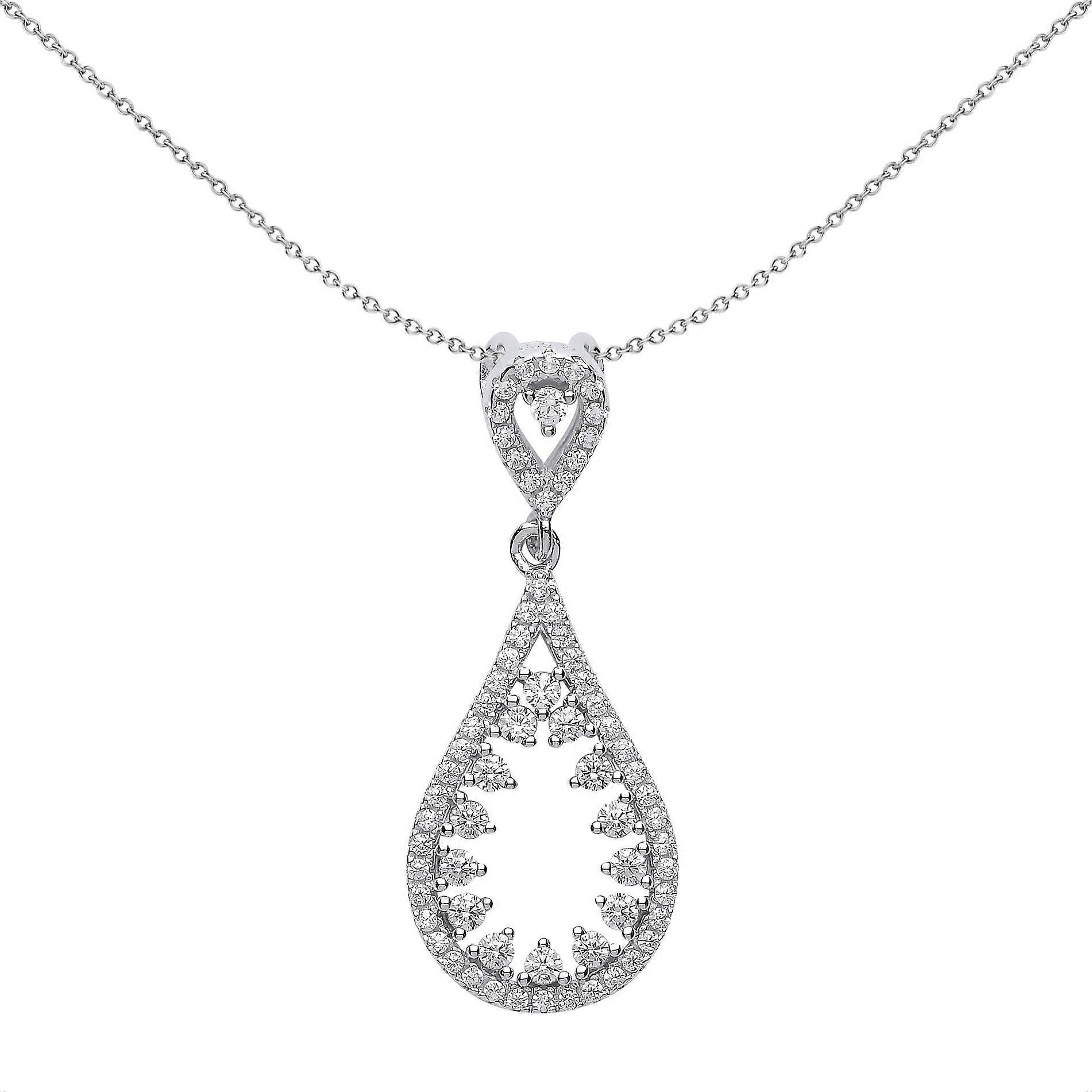 Jewelco London Ladies Sterling Silver Cubic Zirconia Icicle Teardrop Pendant Necklace 18 inch
