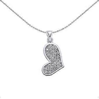 Jewelco London Ladies Sterling Silver Cubic Zirconia Pave Love Heart Pendant Necklace 18 inch