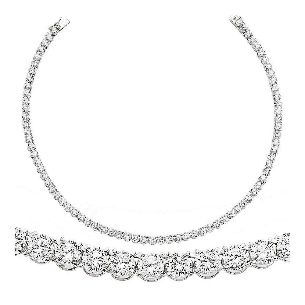 Jewelco London presents this piece from its latest collection of 925 Sterling Silver Rhodium Plated Jewellery. Ladies Rhodium Plated Sterling Silver Round Brilliant Cubic Zirconia Eternity Tennis Necklace 6mm 16 inch . Width: 5mm Length: 430mm Gauge: 6mm Weight: 35.4g GEMSTONE: Cubic Zirconia, Round, White, Simulated SKU: GVK066