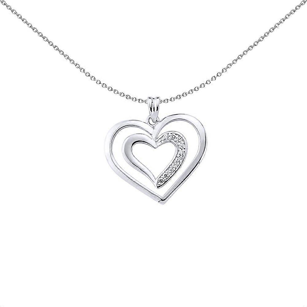 Jewelco London Ladies Sterling Silver Cubic Zirconia Love Heart Pendant Necklace 18 inch