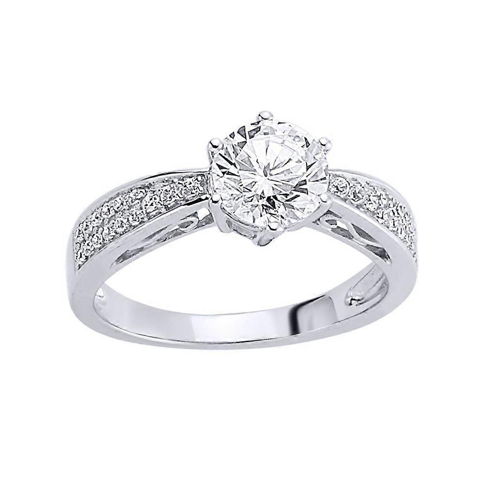 Jewelco London Ladies Sterling Silver Cubic Zirconia Shoulder-Set 6 Claw Solitaire Engagement Ring