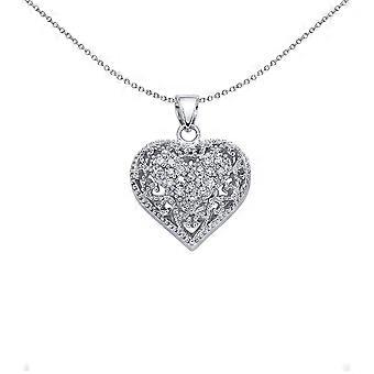 Jewelco London Ladies Sterling Silver Cubic Zirconia Floral Love Heart Pendant Necklace 18 inch