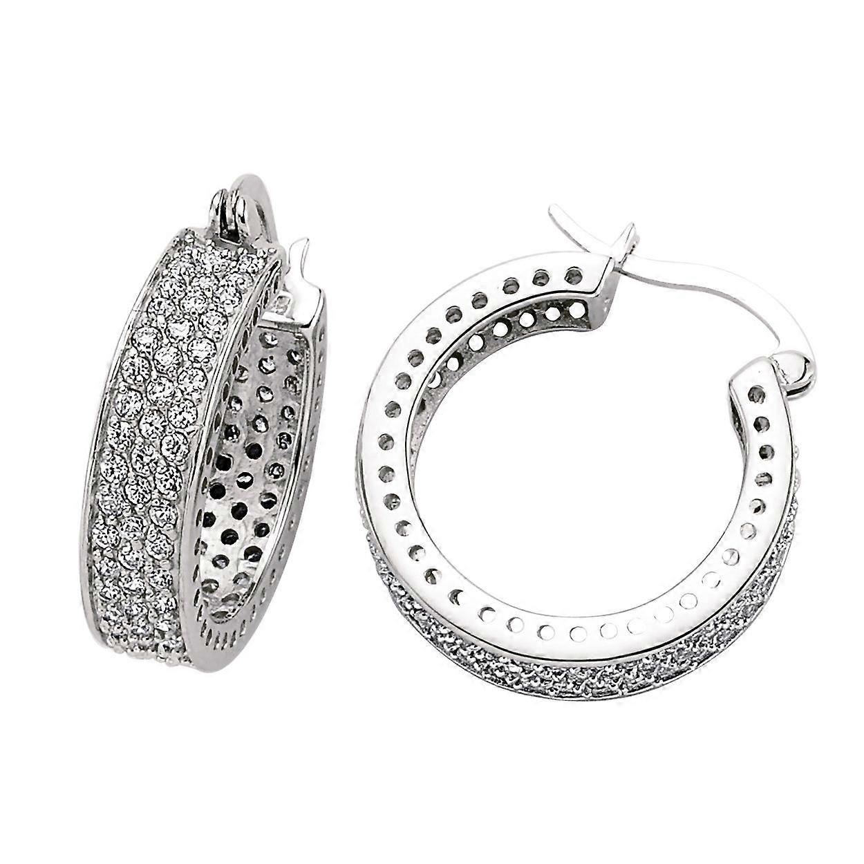 Jewelco London Ladies Sterling Silver Cubic Zirconia Huggie Hoop Earrings 24mm