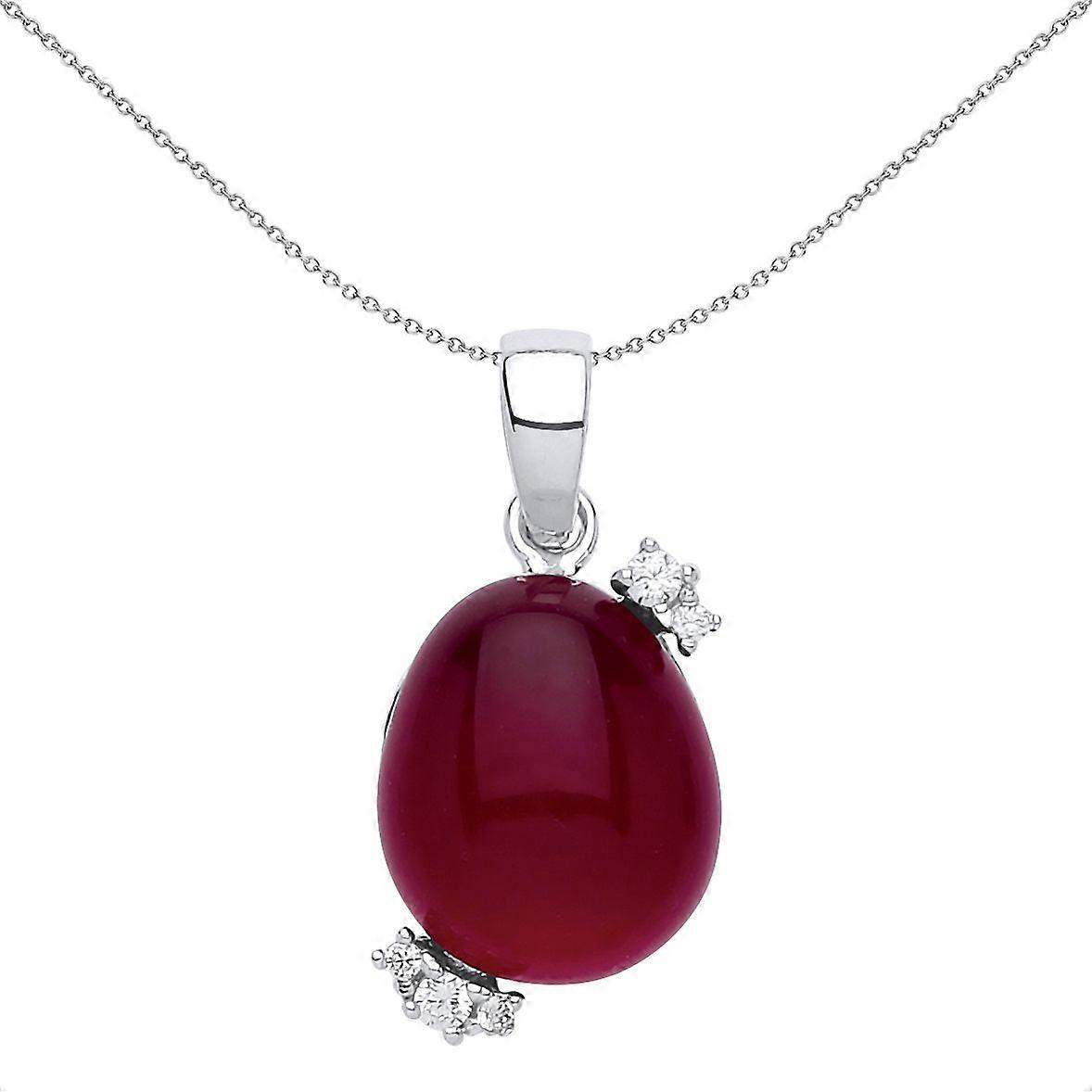 Jewelco London Ladies Sterling Silver Ruby-Red Oval Quartz Pebble Pendant Necklace 18 inch