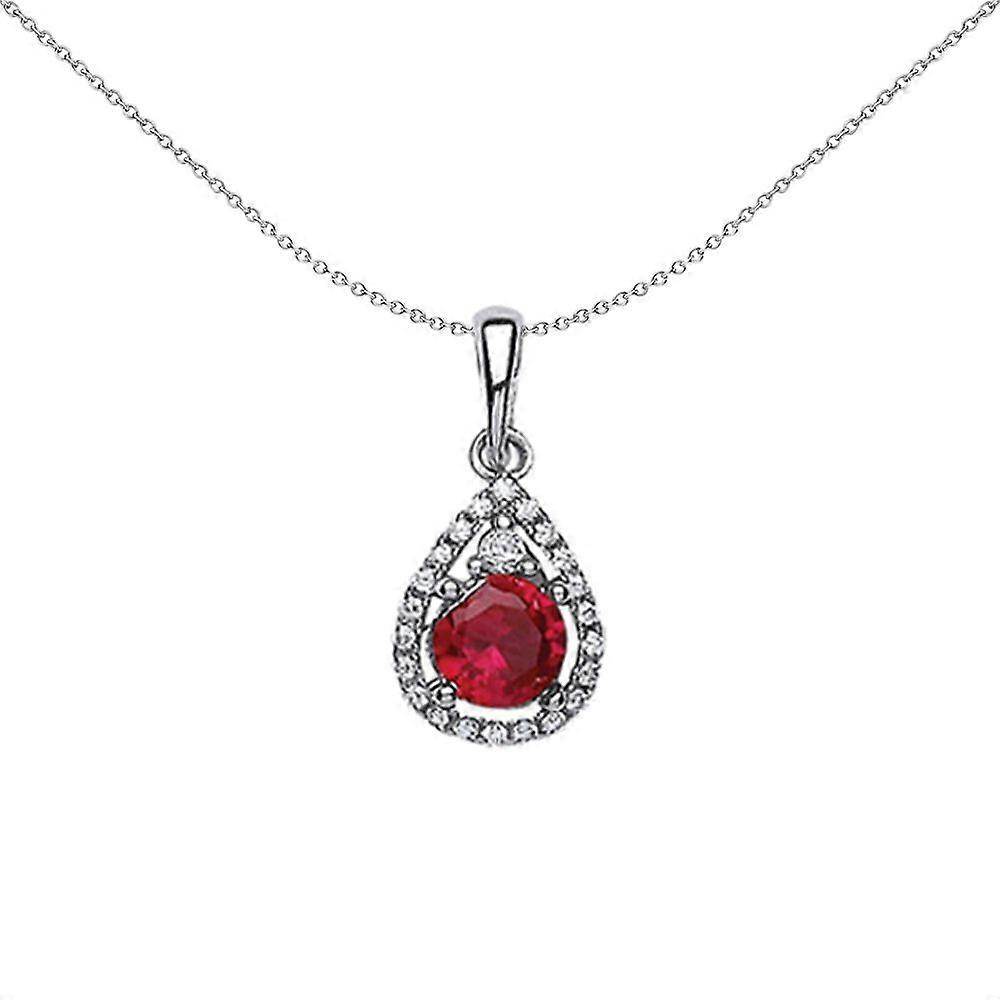 Jewelco London Ladies Sterling Silver Ruby-Red Cubic Zirconia Halo Tear of Joy Pendant Necklace 18 inch