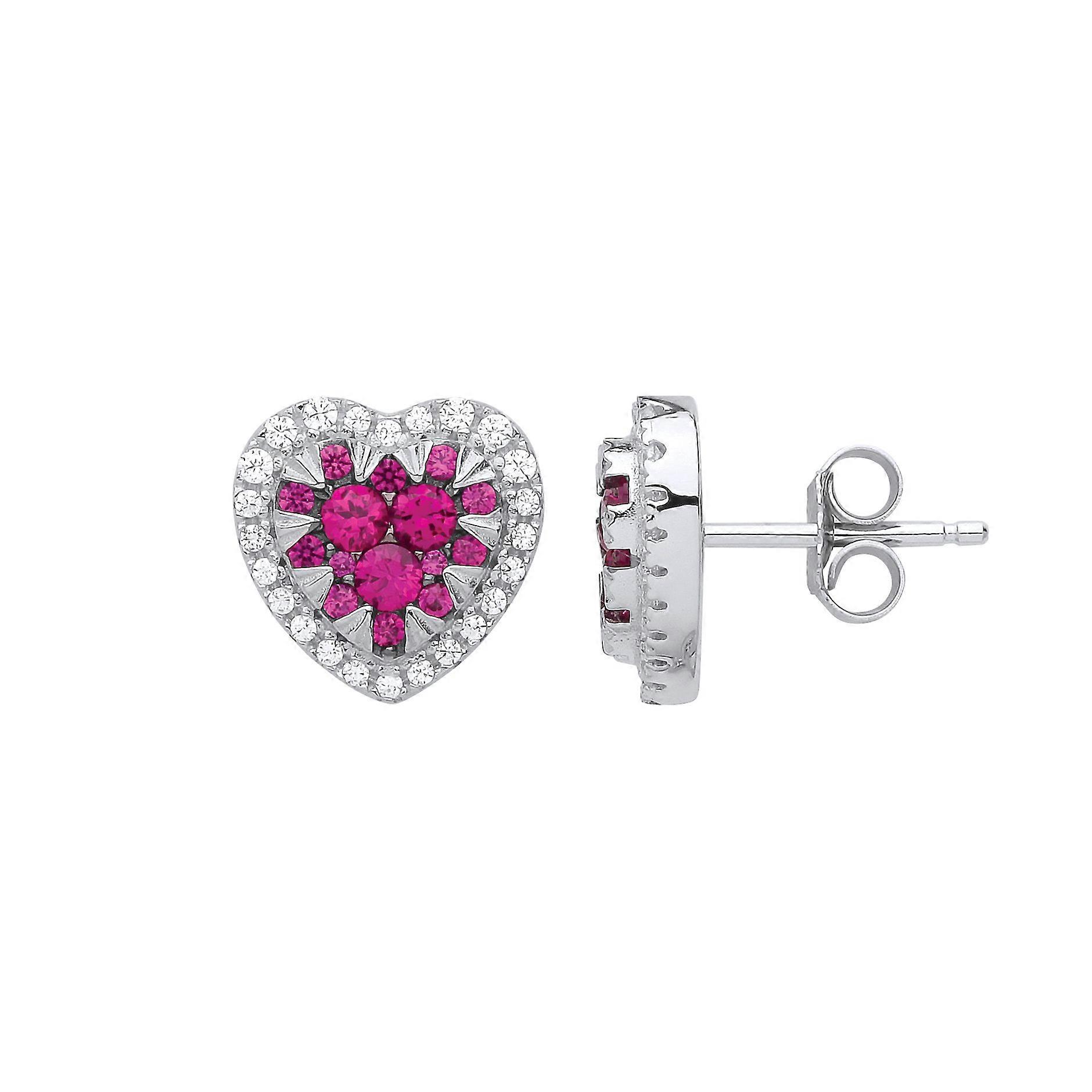 Jewelco London Ladies Sterling Silver Ruby-Red Cubic Zirconia Love Has Teeth Heart Stud Earrings