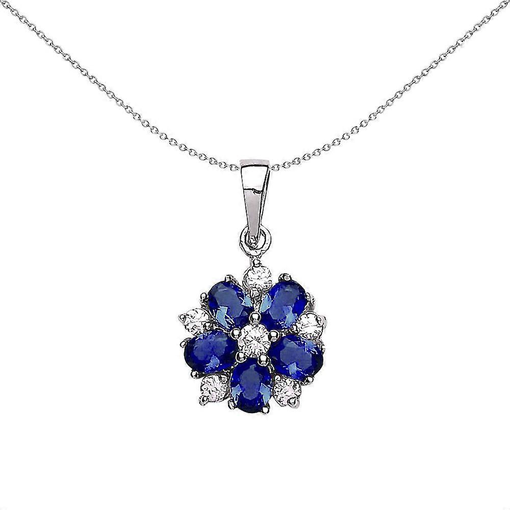 Jewelco London Ladies Sterling Silver Sapphire-Blue Oval Cubic Zirconia Tudor Rose Flower Petal Pendant Necklace 18 inch
