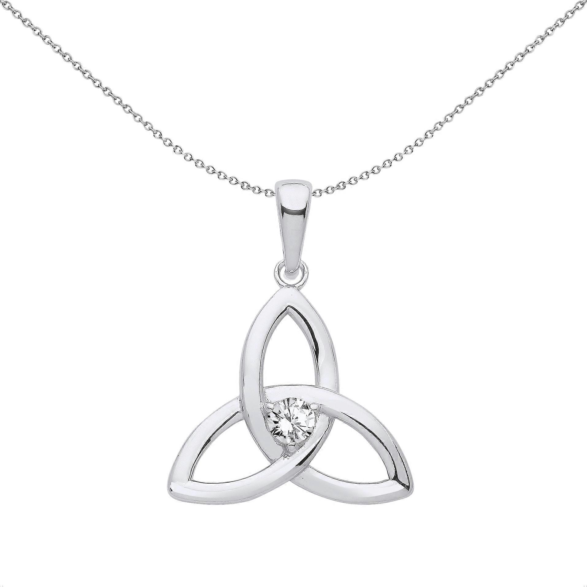 Jewelco London Ladies Sterling Silver CZ Celtic Trinity Trefoil Triquetra Knot Solitaire Pendant Necklace 18 inch