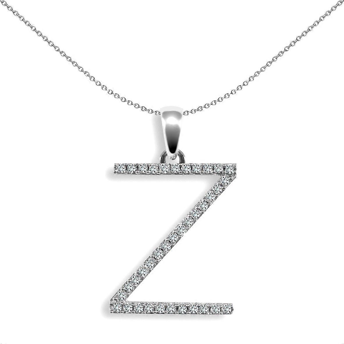 Jewelco London Ladies Solid 9ct White Gold Pave Set Round G SI 0.19ct Diamond Elegant Block Initial ID Charm Pendant