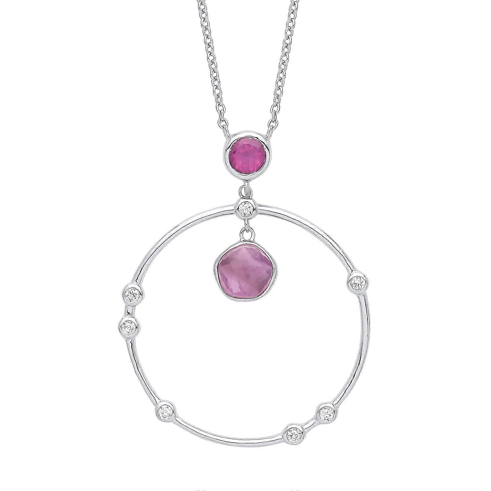 Jewelco London Ladies Silver Lilac Hot Pink irregular Amethyst CZ Pendulum Swing Orbit Circle Lavalier Necklace 16 inch