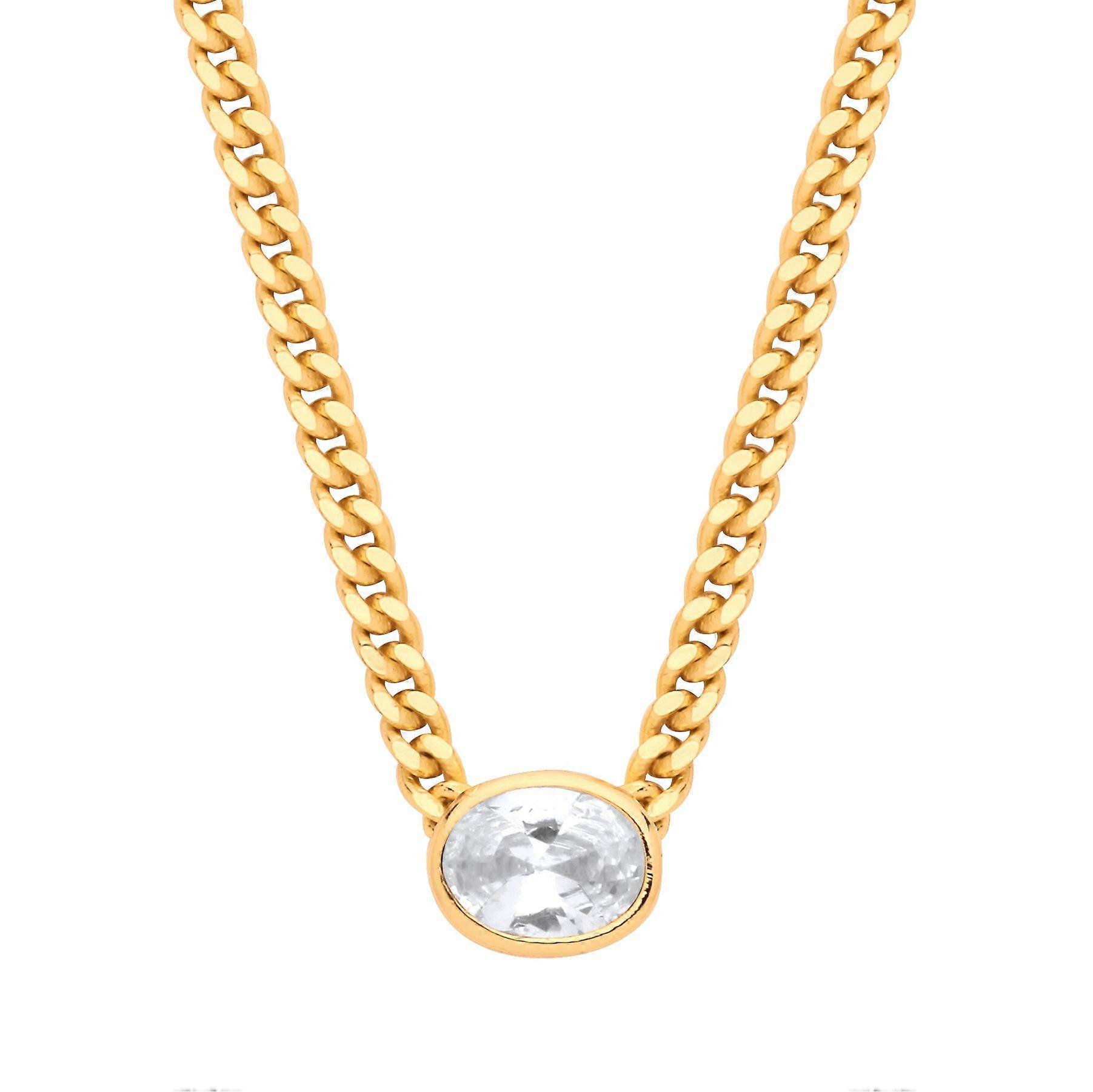 Jewelco London Ladies Gold-Plated Silver Oval CZ Solitaire Collarette Curb Chain Lavalier Necklace 3mm 16 + 1.5 inch