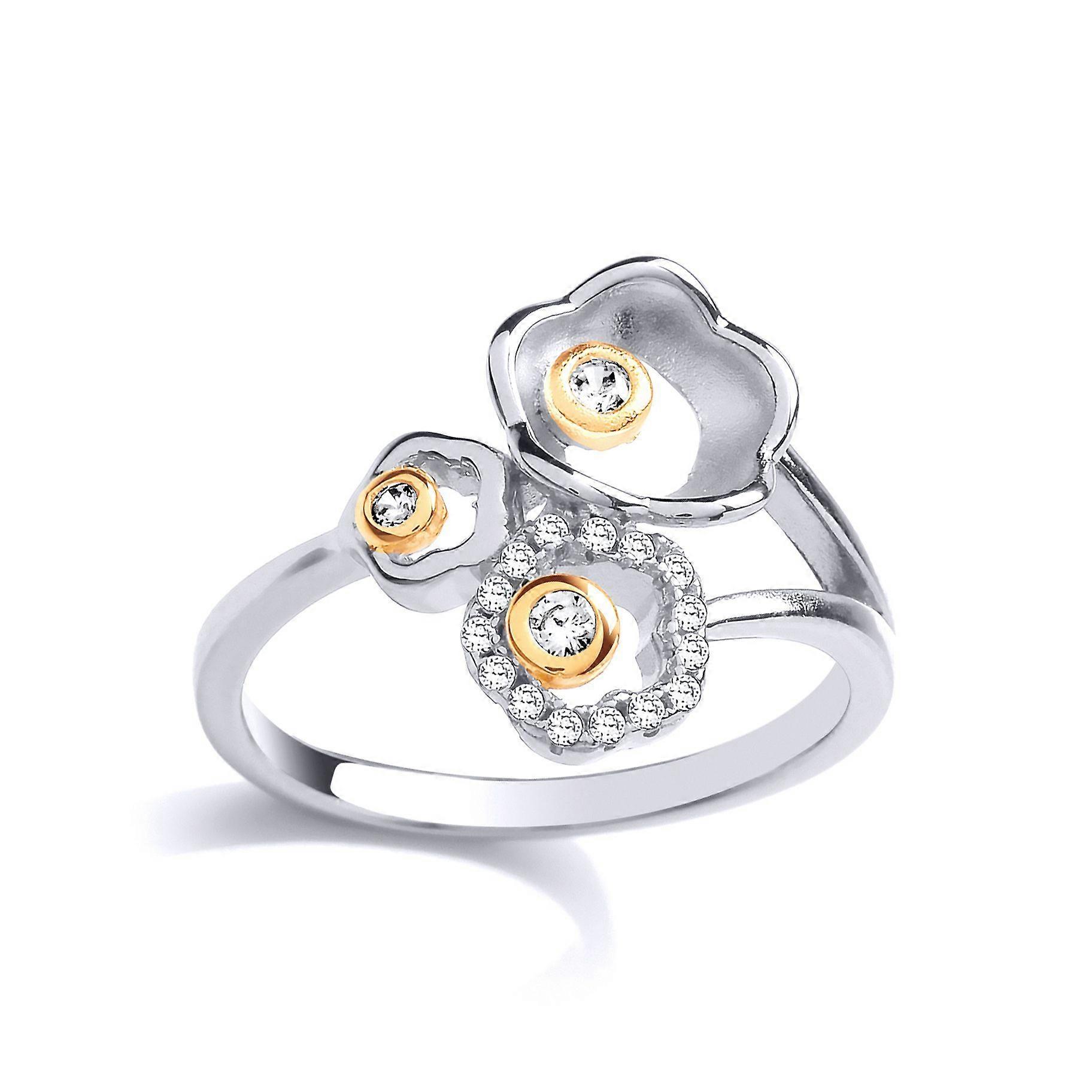 Jewelco London Ladies Rhodium & Yellow Gold-Plated Sterling Silver Cubic Zirconia Daisy Flowers Cluster Ring