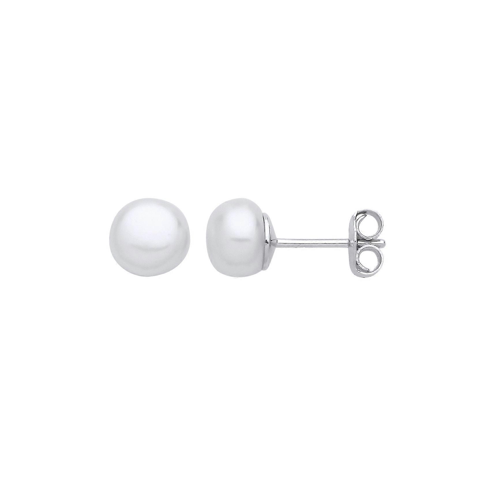 Jewelco London Ladies Rhodium Plated Sterling Silver Cream Pearl Levana Full Moon Button Stud Earrings