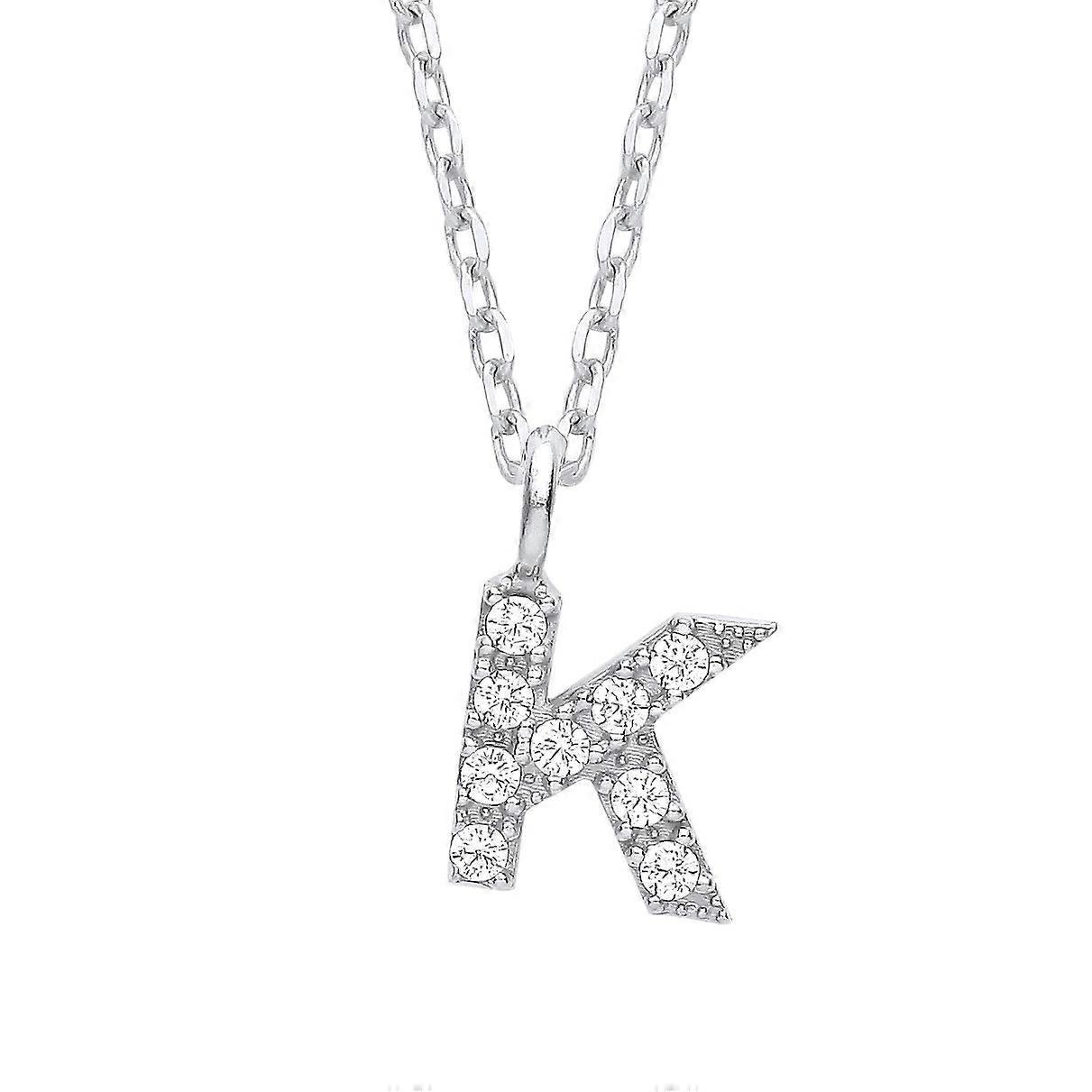 Jewelco London Ladies Rhodium Plated Sterling Silver Encrusted Mini Initial Pendant Necklace 16 + 1 inch
