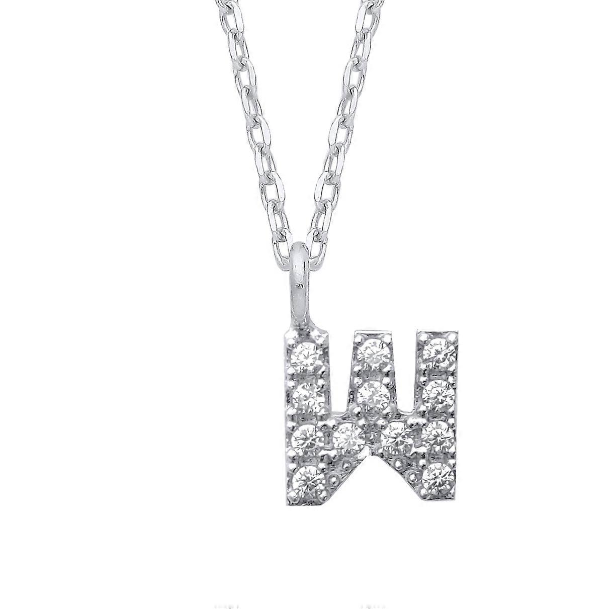 Jewelco London Ladies Rhodium Plated Sterling Silver Encrusted Mini Initial Pendant Necklace 16 + 1 inch