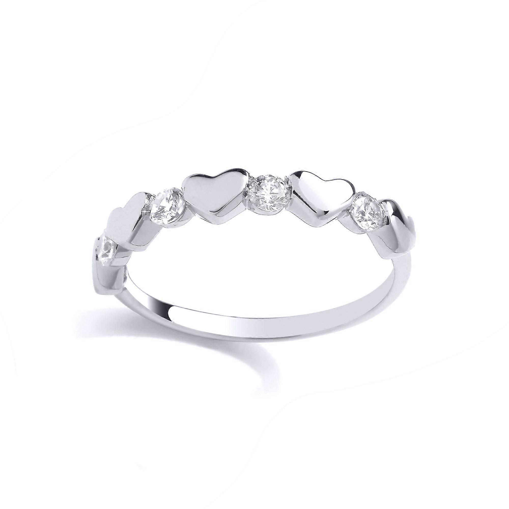 Jewelco London Ladies Rhodium Plated Sterling Silver CZ 5 Love Hearts Half Eternity Ring