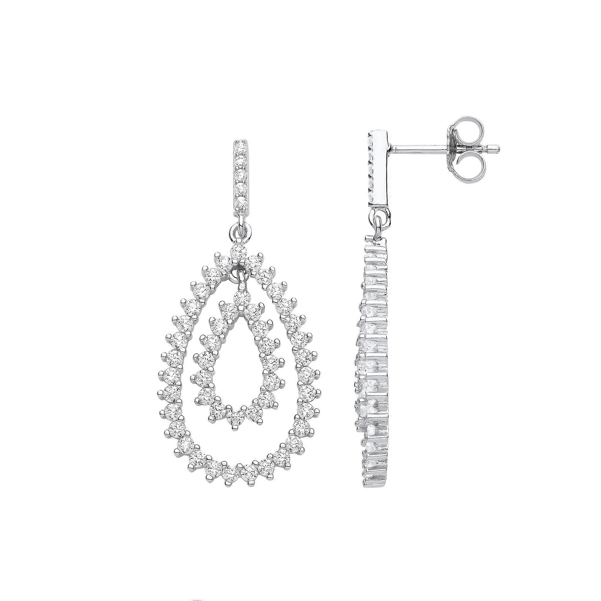 Jewelco London Ladies Rhodium Plated Sterling Silver CZ Fizzy Electrified Avocado Pear Drop Earrings