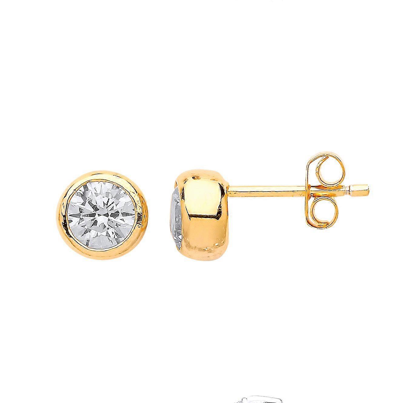 Jewelco London Ladies Yellow Gold-Plated Sterling Silver Cubic Zirconia Golden Donut Solitaire Stud Earrings