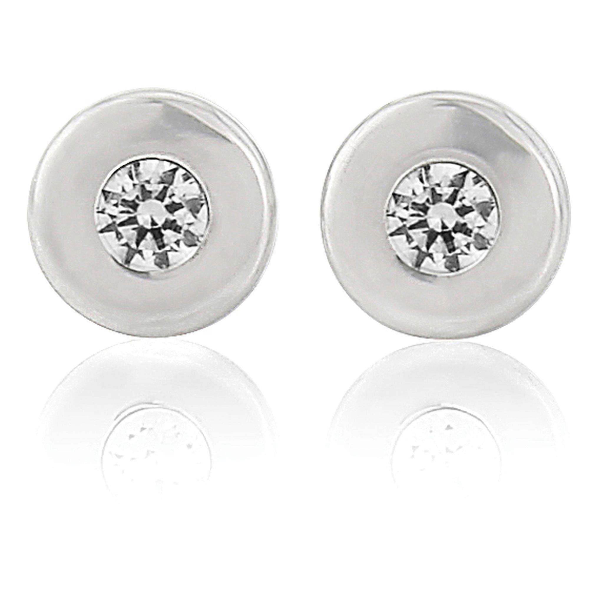 Jewelco London Ladies 9ct White Gold Cubic Zirconia Donut Ring Stud Earrings 4mm
