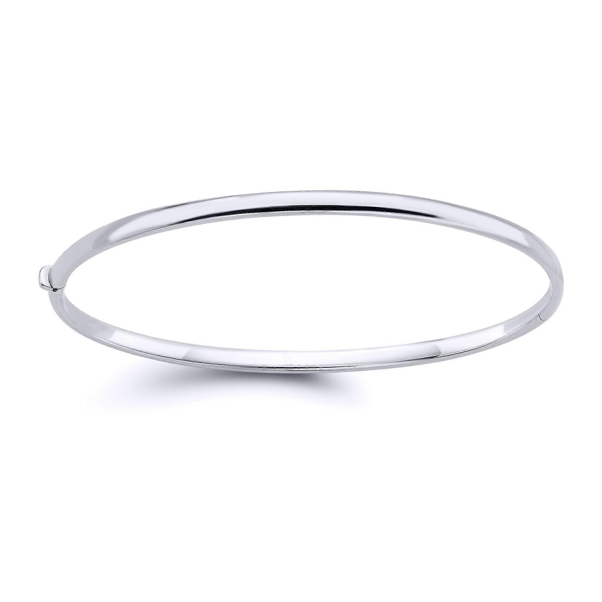 Jewelco London Ladies 9ct White Gold D-Shape Tube Minimalist Oval Bangle Bracelet 3mm
