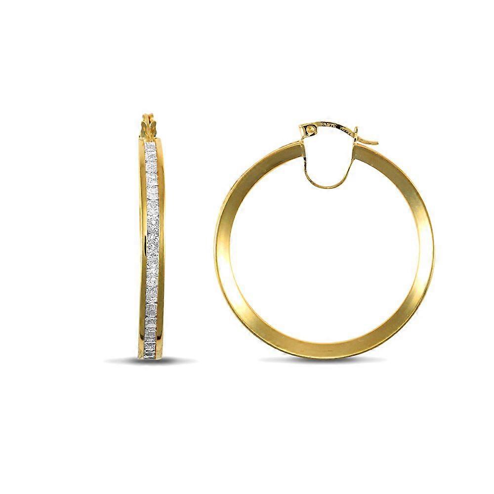 Jewelco London Ladies 9ct Yellow Gold White Round Brilliant Cubic Zirconia Eternity 4mm Hoop Earrings 35mm