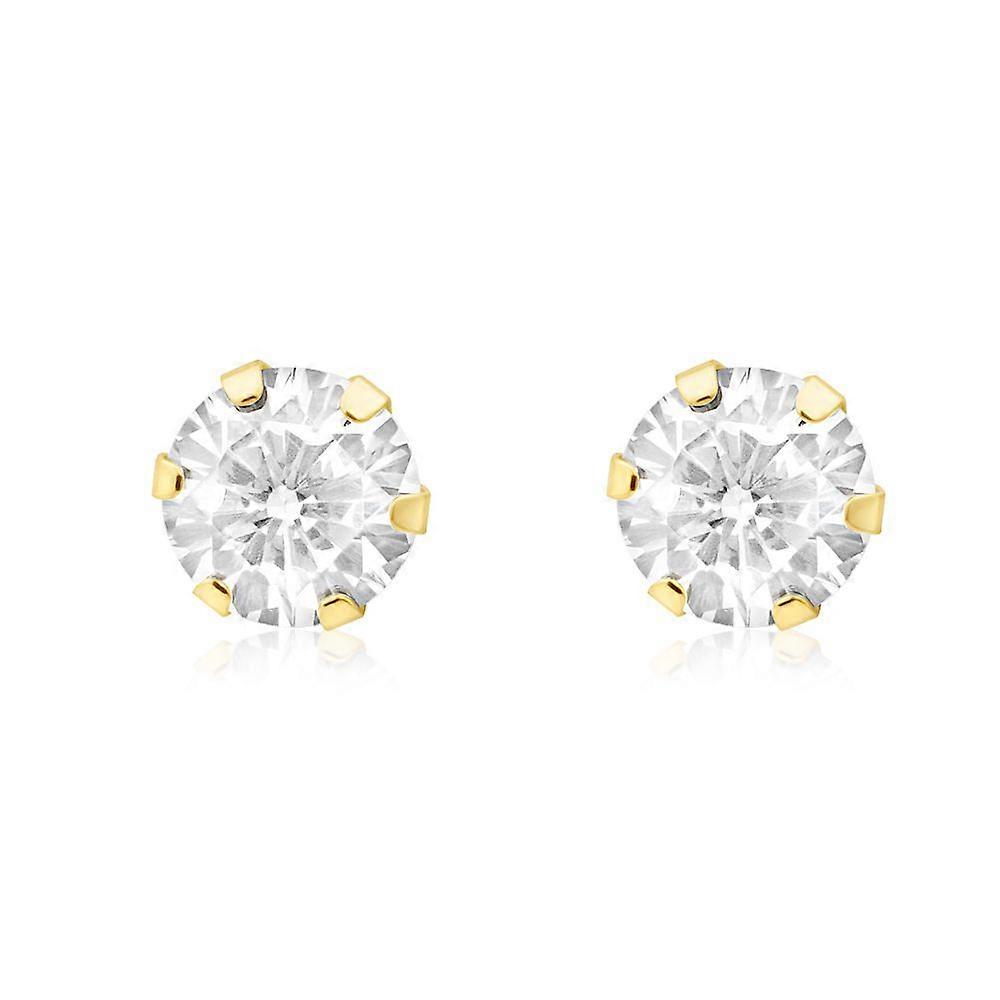 Jewelco London Ladies 9ct Yellow Gold Cubic Zirconia 6 Claw Stud Earrings - 5mm