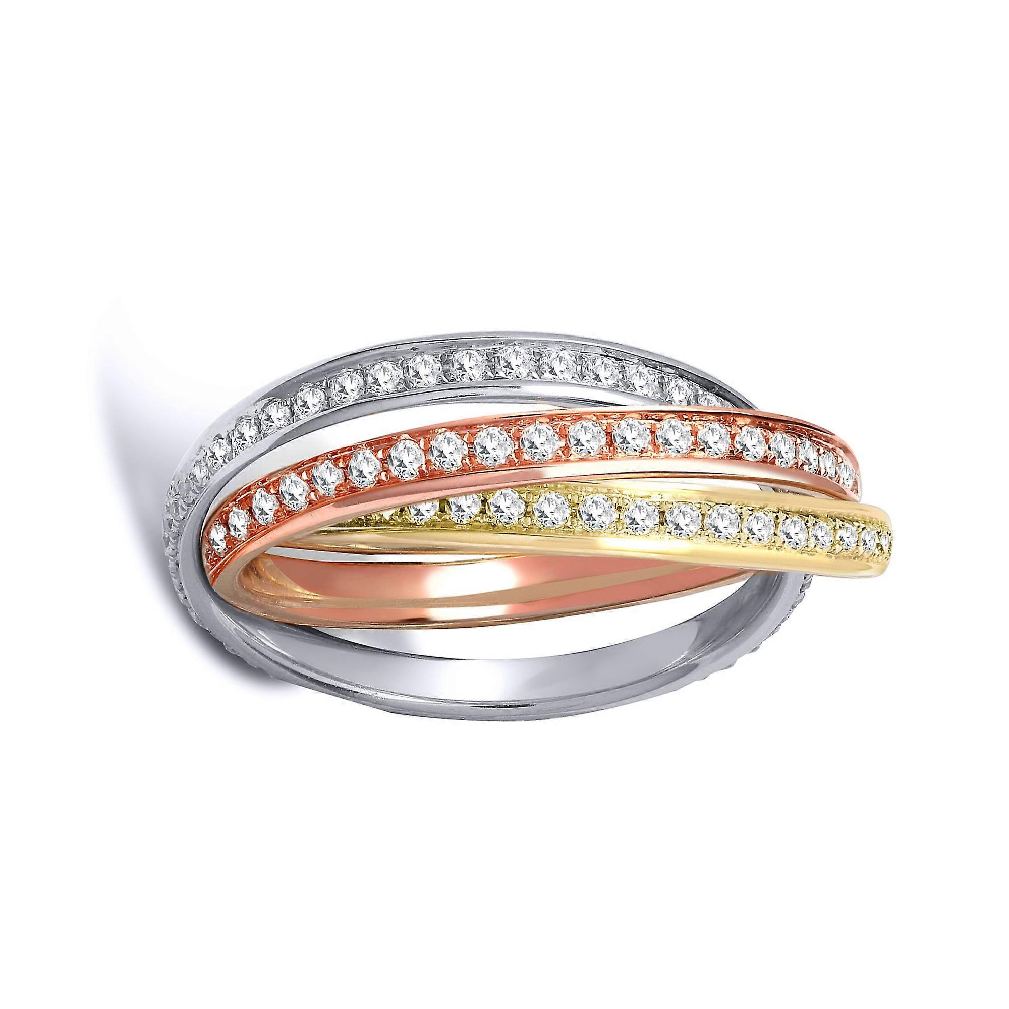 Jewelco London Solid 18ct 3 Colour Gold Pave Set Round G SI1 0.82ct Diamond 2mm Russian Wedding Ring 6mm