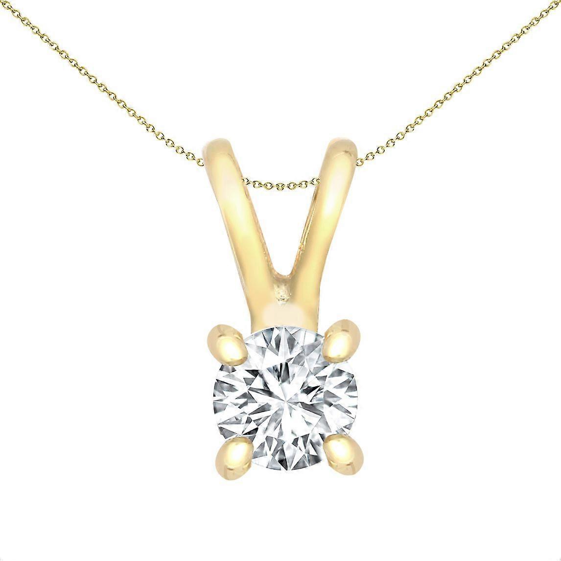 Jewelco London Solid 9ct Yellow Gold 4 Claw Set Round H I1 0.3ct Diamond V-bale Solitaire Pendant