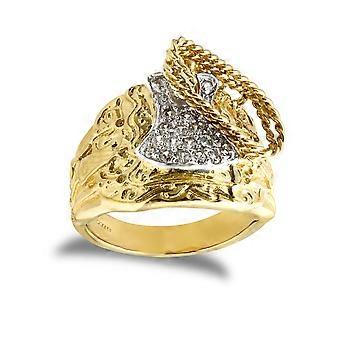 Jewelco London Men's Solid 9ct Yellow Gold White Round Brilliant Cubic Zirconia Horse Saddle Rope Ring
