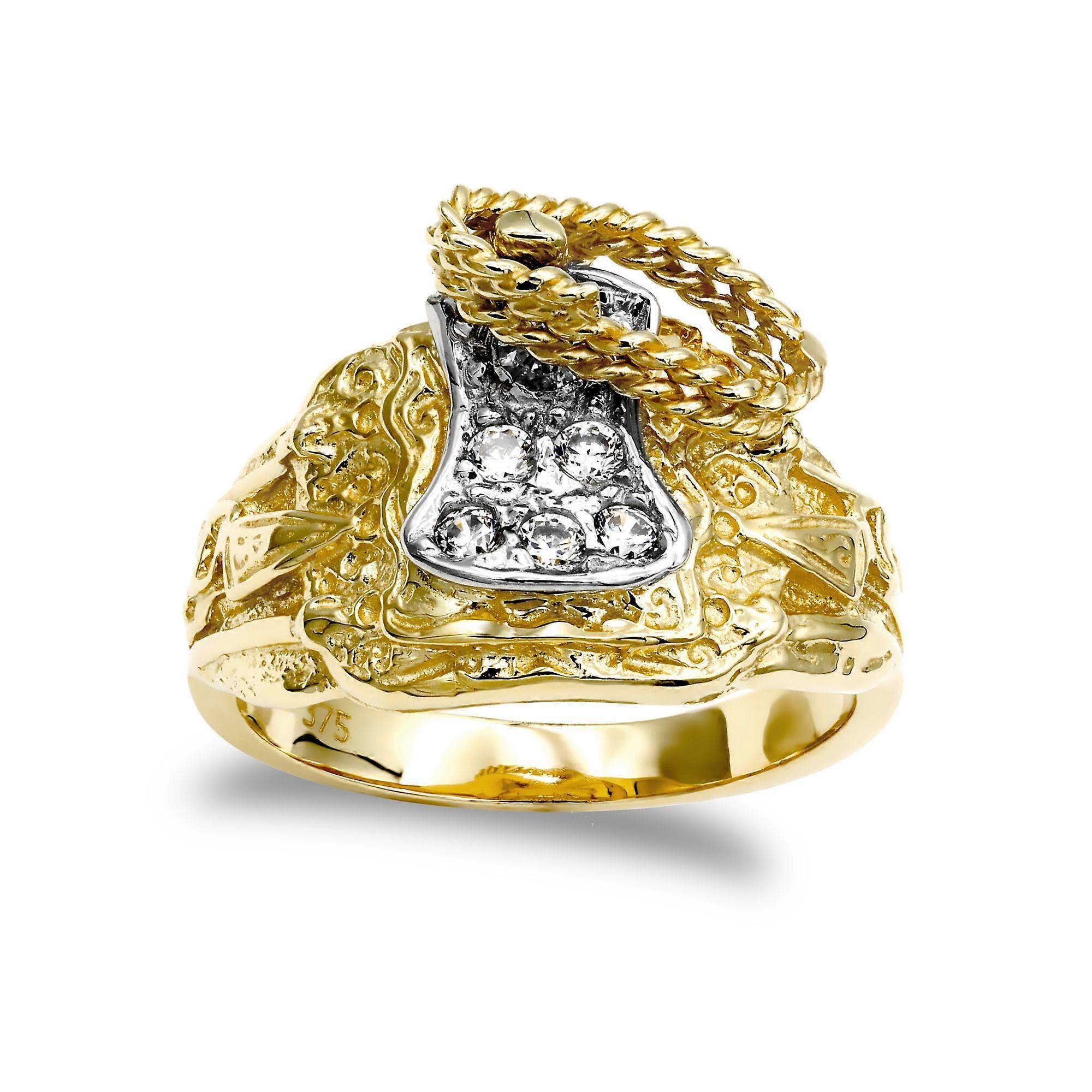 Jewelco London Men's Solid 9ct Yellow Gold White Round Brilliant Cubic Zirconia Horse Saddle Rope Ring