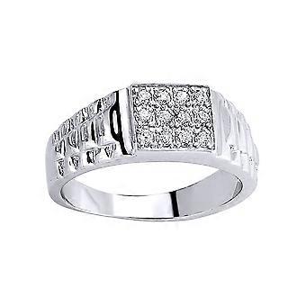 Jewelco London Mens Sterling Silver Cubic Zirconia Watch Strap Cluster Signet Ring