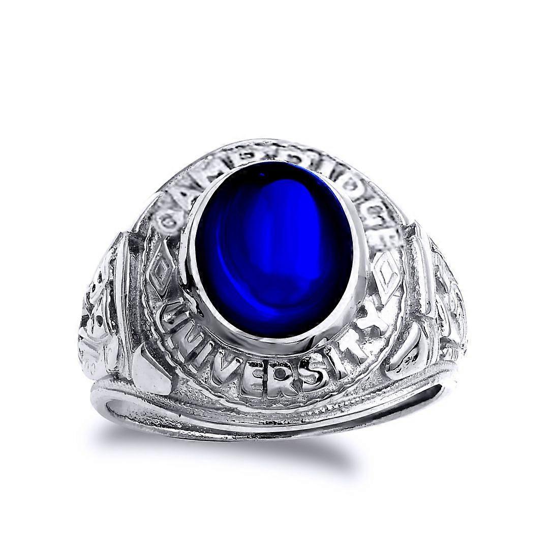 Jewelco London Mens Sterling Silver Sapphire-Blue Oval Cabochon CZ Solitaire Cambridge University College Ring