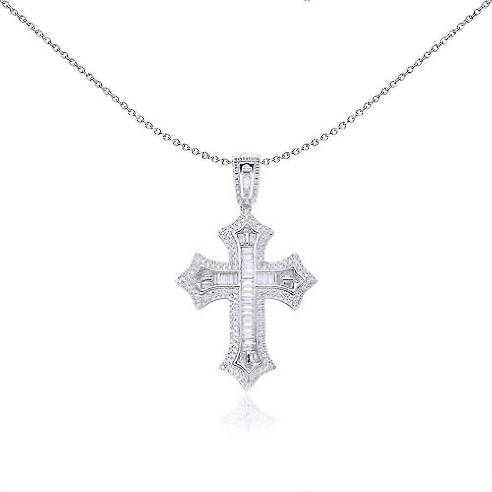 Jewelco London Unisex Rhodium Silver White Baguette CZ Spiked Fleur Arrowhead Cross Pendant