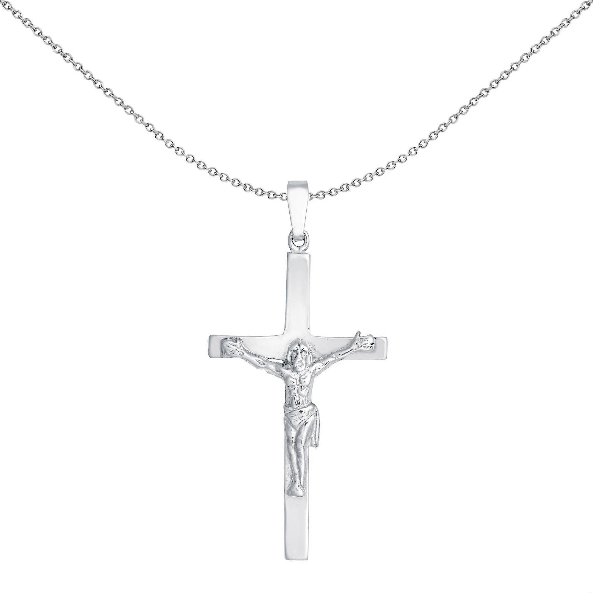 Jewelco London Unisex Rhodium Plated Sterling Silver Stamped Crucifix Plain Cross Pendant