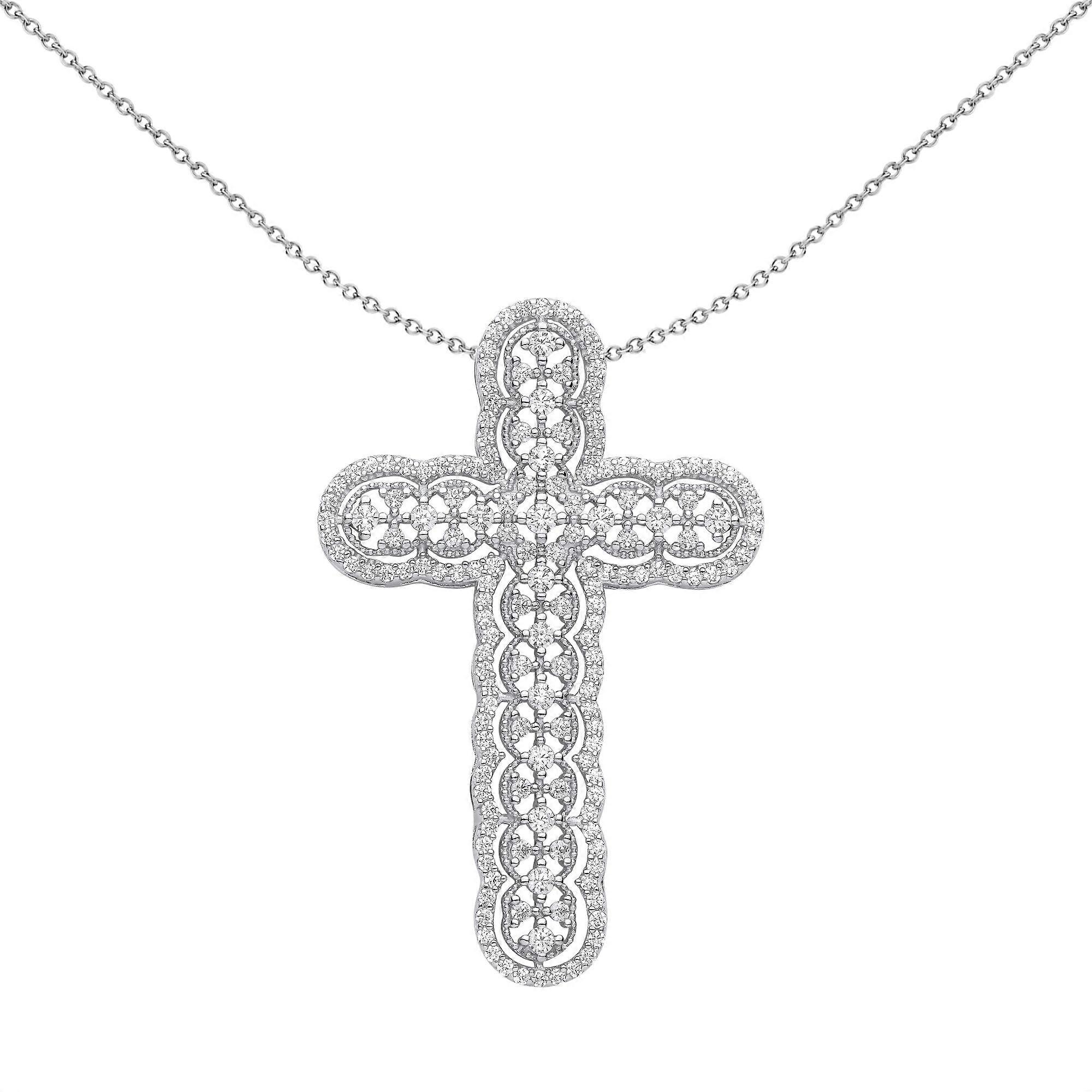 Jewelco London Unisex Rhodium Plated Sterling Silver CZ Scallop Edge Overlapping Circles Cross Pendant Necklace 18 inch