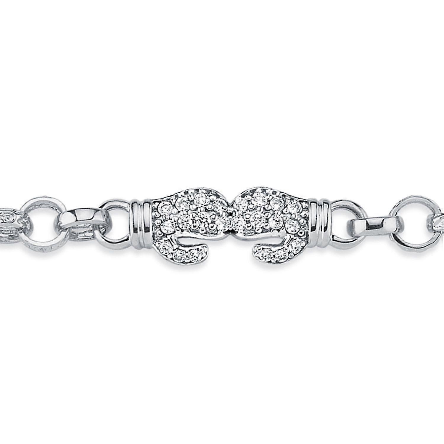 Jewelco London Boys Rhodium Plated Sterling Silver Round Cubic Zirconia Boxing Glove Belcher Bracelet 7mm 6 inch