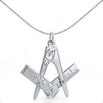 Jewelco London 纯银开闭方形和指南针共济会吊坠 - 18 英寸链条