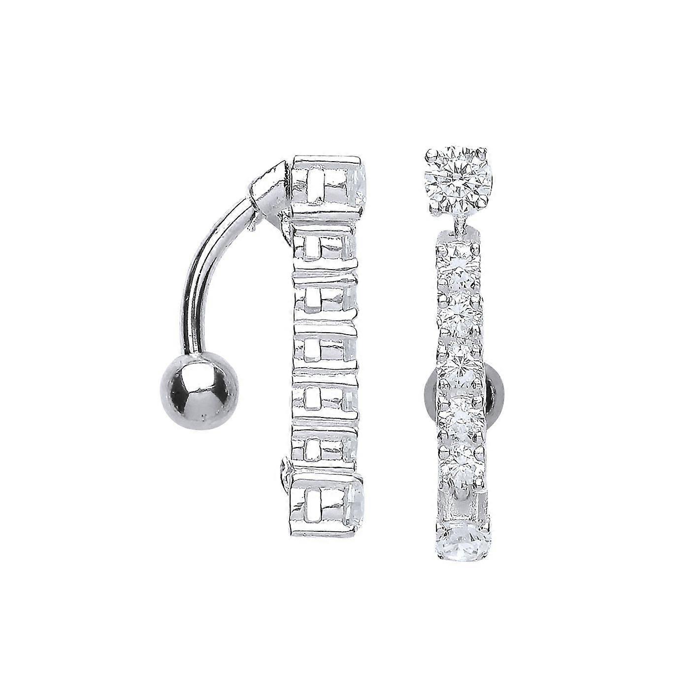 Jewelco London Sterling Silver Cubic Zirconia 7 Stone Line Drop Banana Belly Bar