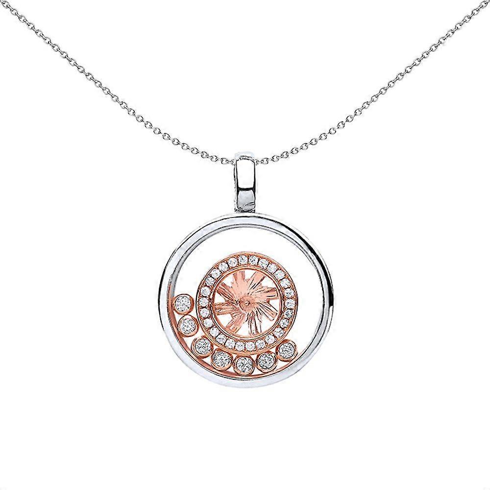 Jewelco London Rhodium & Rose Gold-Plated Sterling Silver CZ Floating Stone Alloy Wheel Pendant Necklace 18 inch