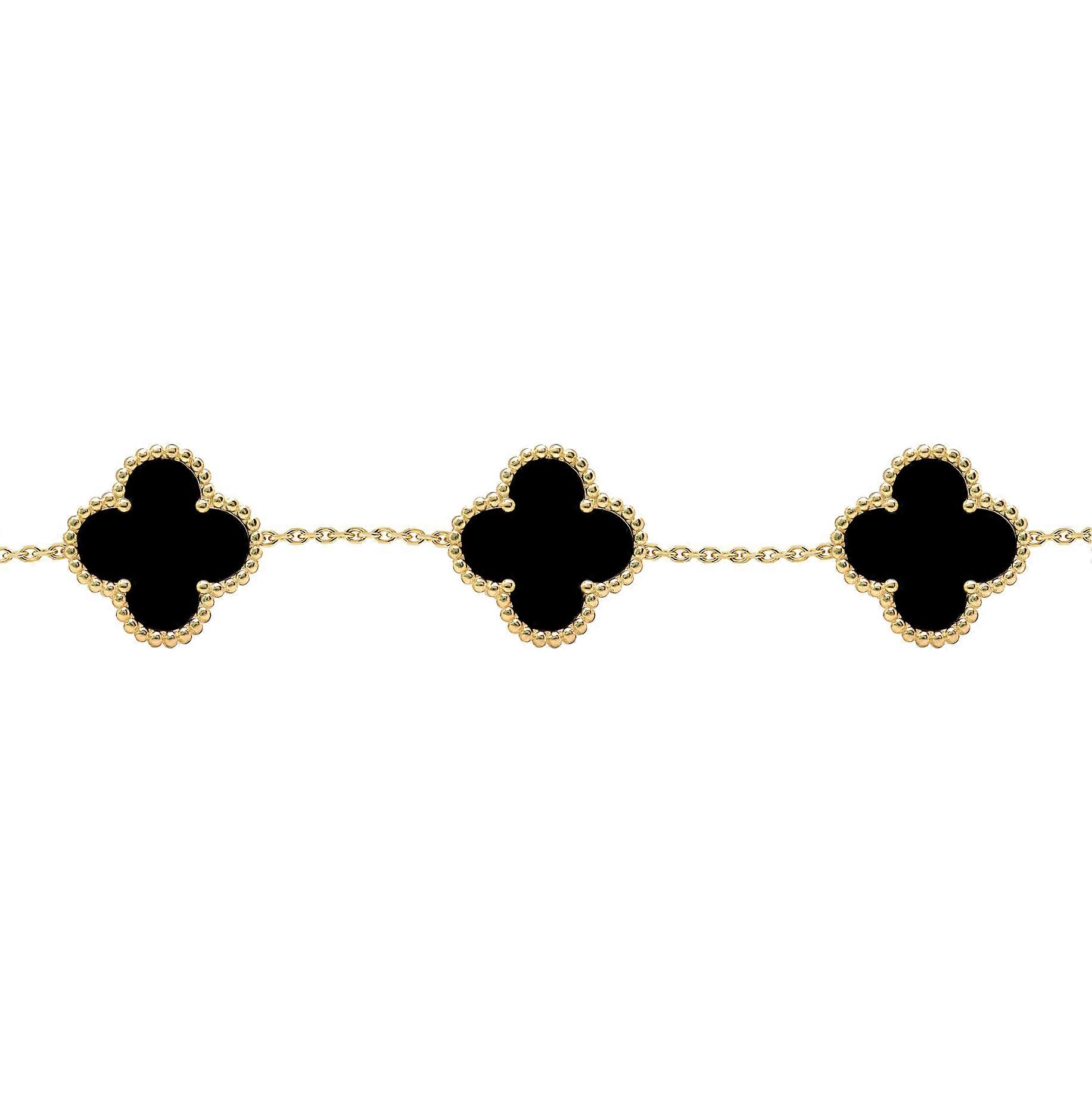 Jewelco London 14k Gold-plated Silver Black Clover Onyx Bead Edge Lucky Charm 5 Station Bracelet 7-8.5"