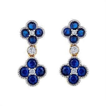 Jewelco London 14k Gold-plated Silver Blue Round Brilliant CZ Double Clover Solitaire Drop Earrings