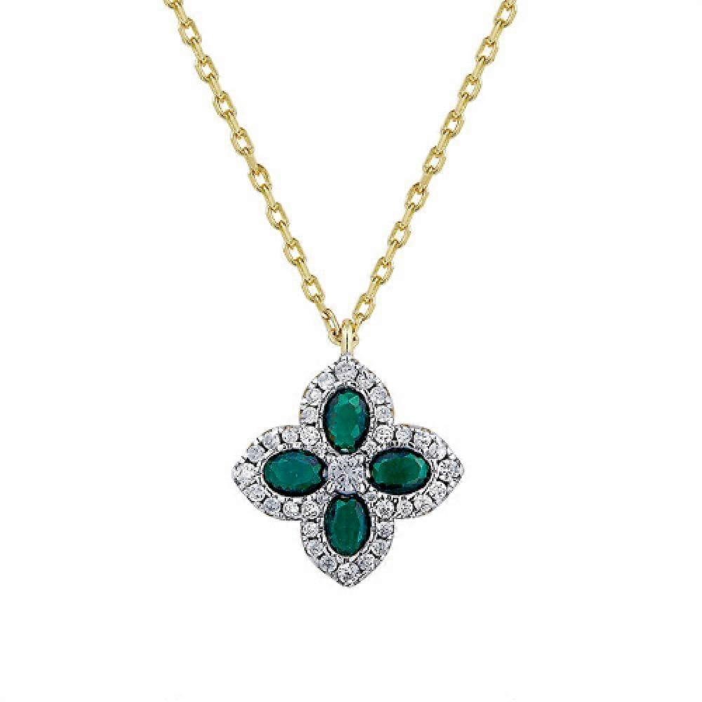 Jewelco London 14k Gold-plated Silver Green Oval CZ Pointed Quatrefoil Clover Pendant Necklace